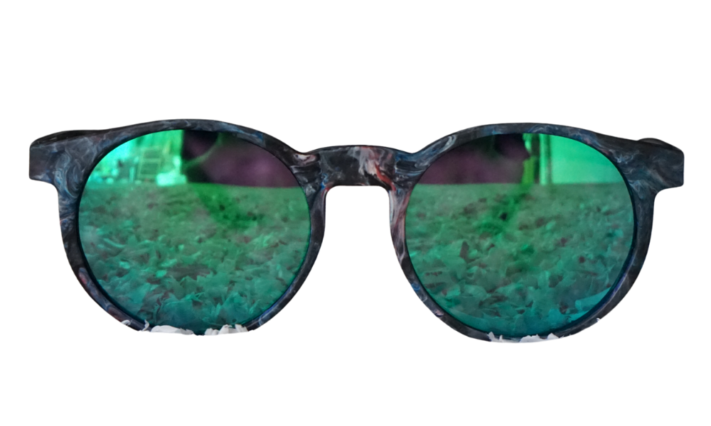 Each pair is fully handmade on the island without outsourcing. The process includes careful cleaning, shredding, melting, and molding, followed by assembly and quality checks. Every swirl pattern in the plastic is naturally formed, making each frame truly unique.